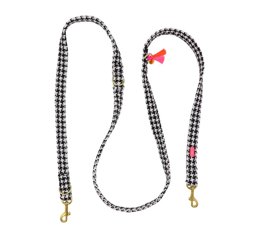Die 3fach verstellbare Leine ist ca 180 cm lang und hat eine Breite von 1,5, 2 oder 3 cm. Sie lässt sich bequem auf drei Längen verstellen. Diese Leine hat zusätzlich immer Troddeln und süße Schmuckanhänger als hübsche Eyecatcher. Sie verfügt über 2 Karabiner und 3 D-Ringe für die Einstellungen.