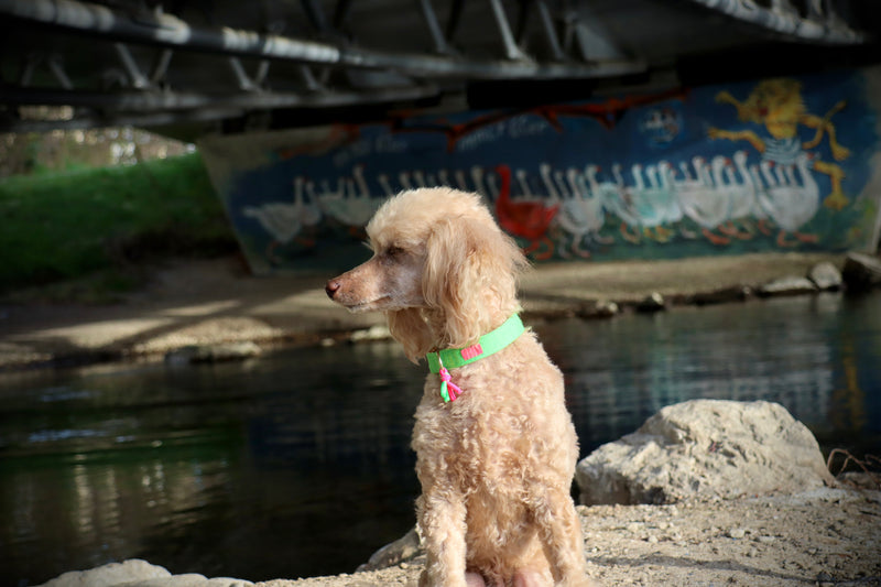 Turn your dog into an absolute style icon. The FeelGood Neon Green collar will turn heads on every walk. In bright green, with shiny metal hardware and ultra-soft fabric, this collar is more than just an accessory – it's a statement.