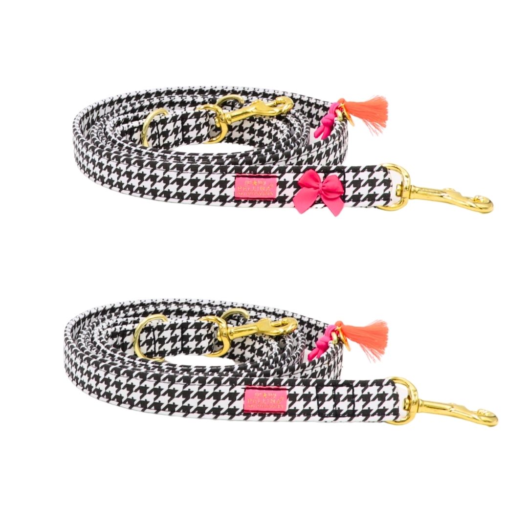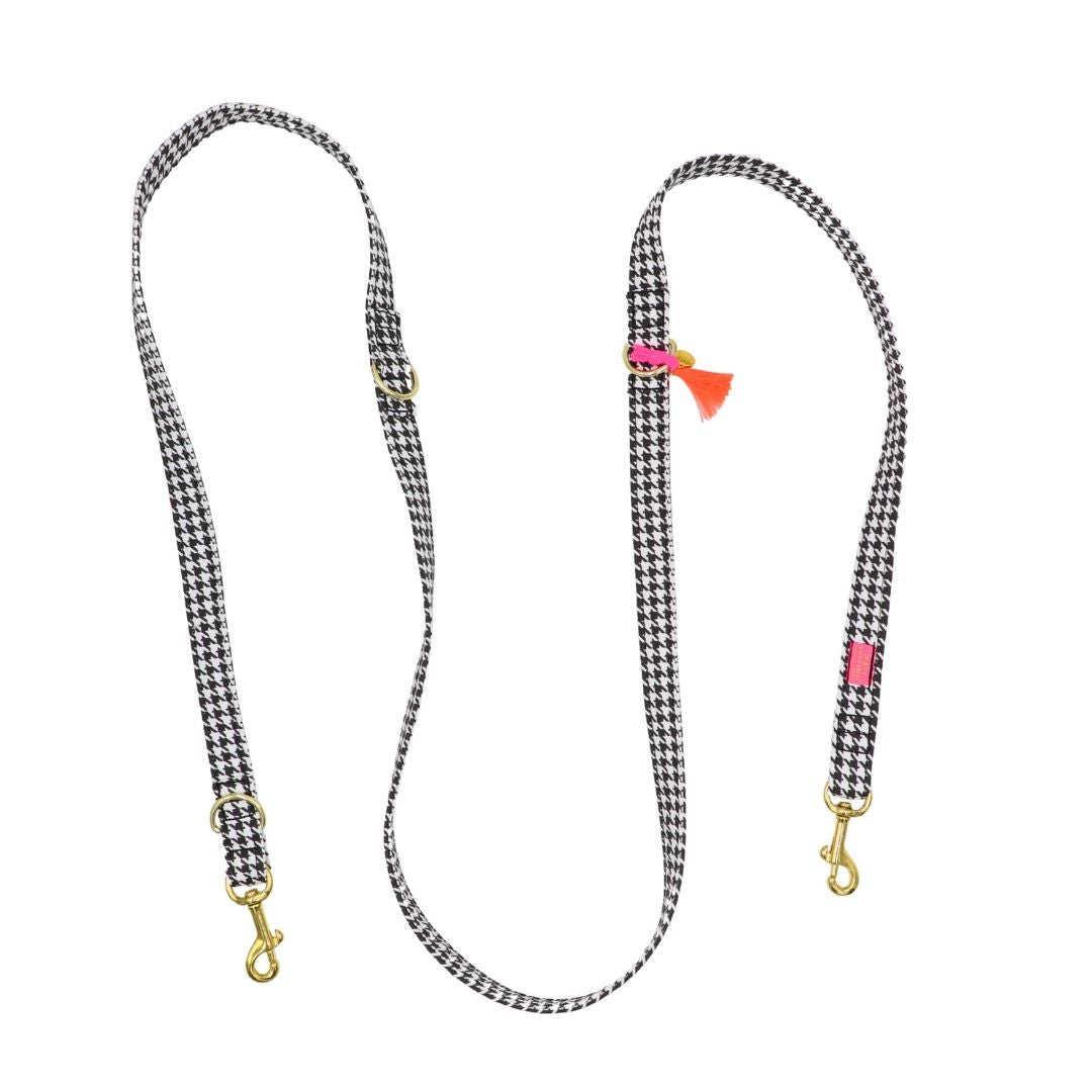 Die 3fach verstellbare Leine ist ca 180 cm lang und hat eine Breite von 1,5, 2 oder 3 cm. Sie lässt sich bequem auf drei Längen verstellen. Diese Leine hat zusätzlich immer Troddeln und süße Schmuckanhänger als hübsche Eyecatcher. Sie verfügt über 2 Karabiner und 3 D-Ringe für die Einstellungen.