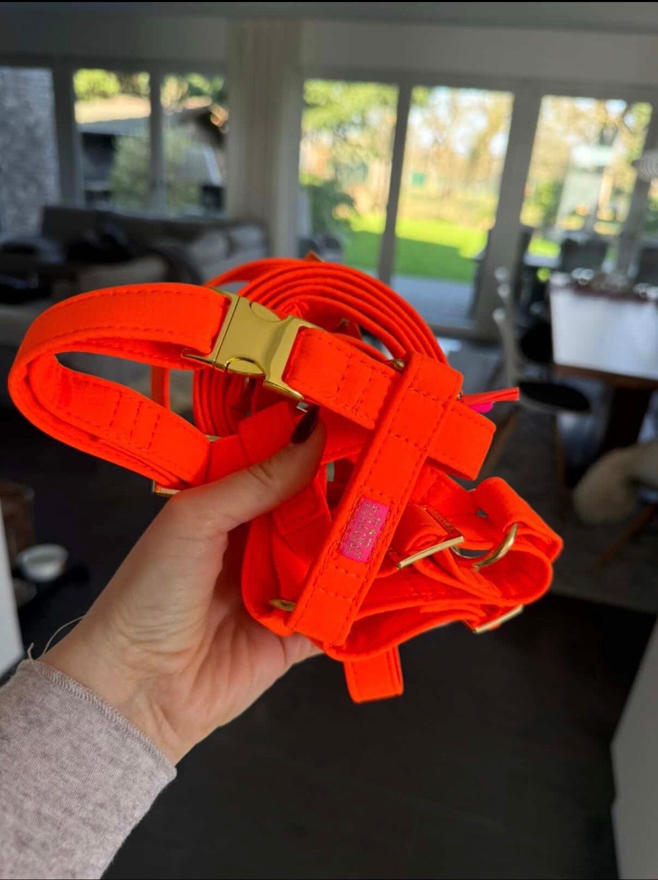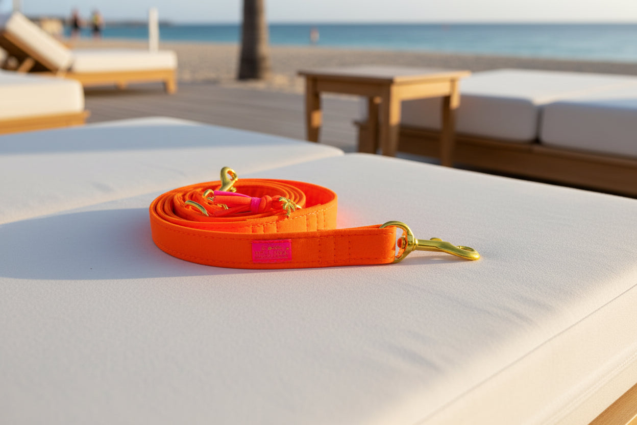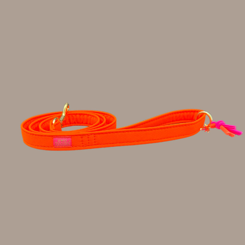 Die Neonique Leine in Neonorange überzeugt durch Stabilität und ein dynamisches Design – perfekt für aktive Spaziergänge.